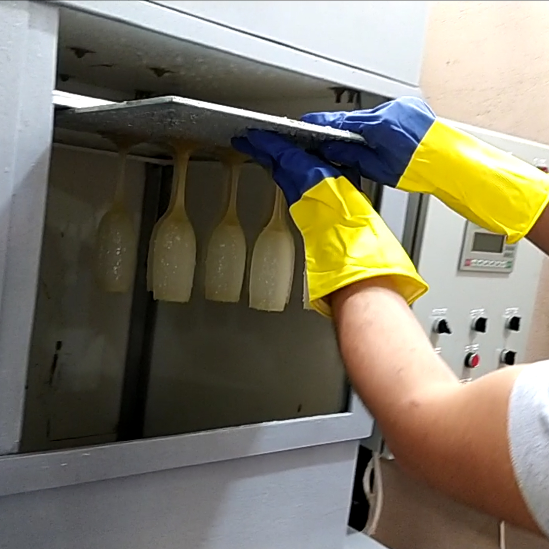وم هذه الماكينة بصهر الشمع المستخدم في الحوض (مصنوع من الإستانليس استيل) حتى درجة حرارة 90 درجة لكي تتيح للمستخدم تنزيل الزجاج المطلوب للمدة المطلوبة ثم تركه خارج الماكينة ليتجمد لتكوين طبقة رقيقة من الشمع على الزجاج المطلوب .