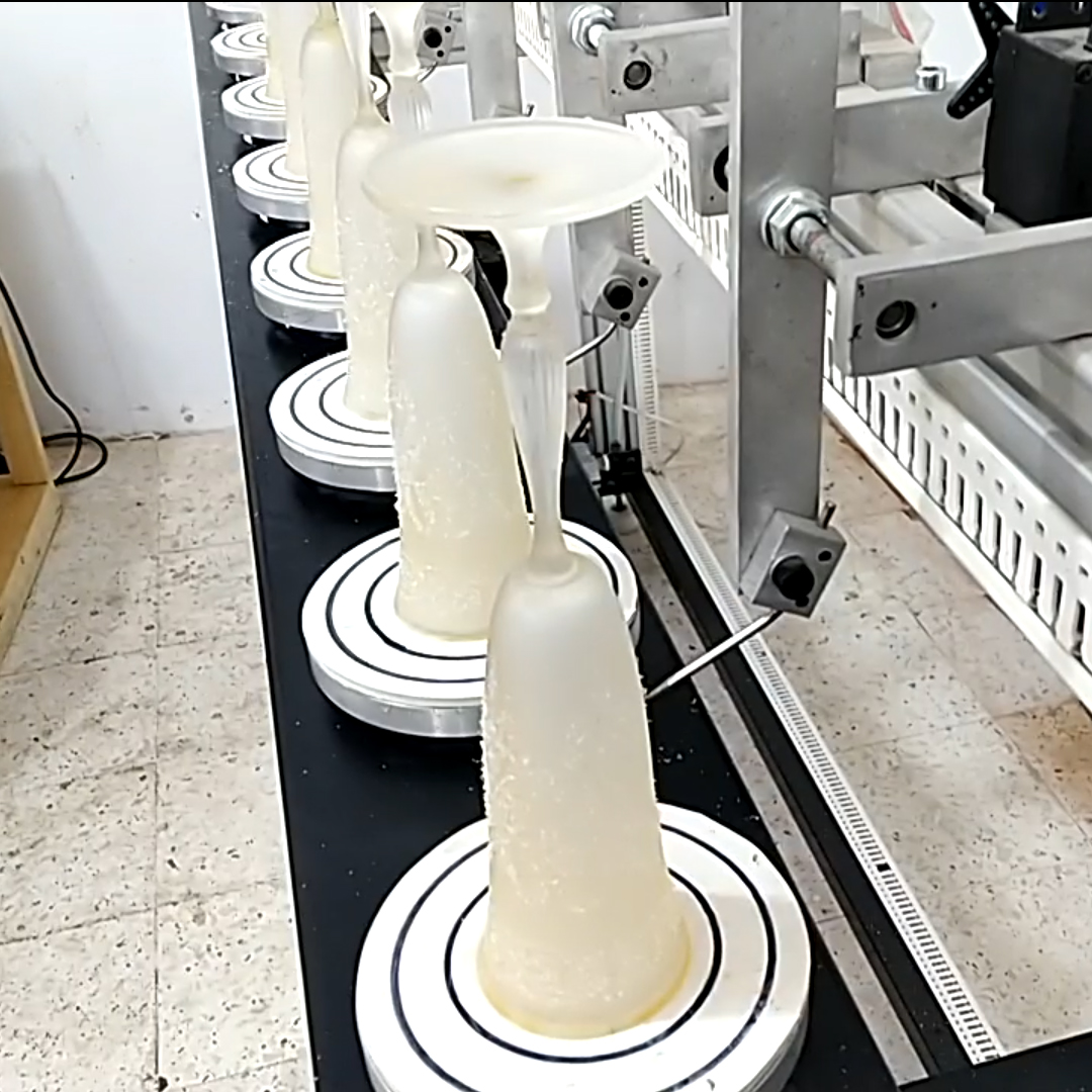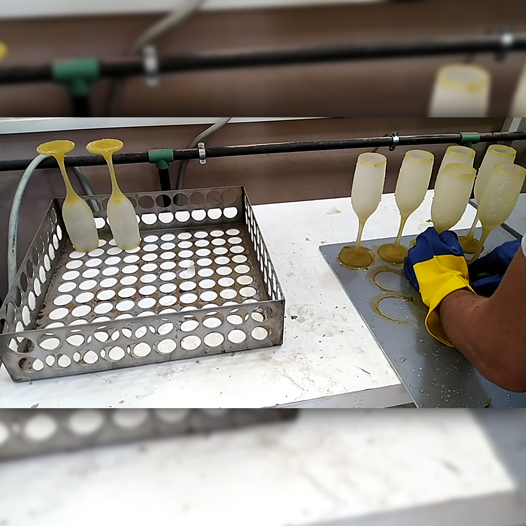 تقوم هذه الماكينة بغسيل قطع الزجاج بالمياه الساخنة حتى 95 درجة حتى يتم إزالة كامل طبقة الشمع من على القطع المطلوبة عن طريق مرحلتين لطلب العميل، أو ثلاث مراحل من الغسيل طبقا (دورة الغسيل دورة مغلقه لتوفير استخدام المياه)