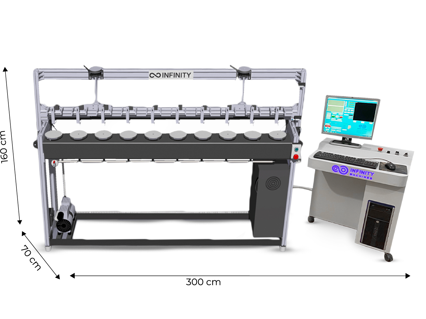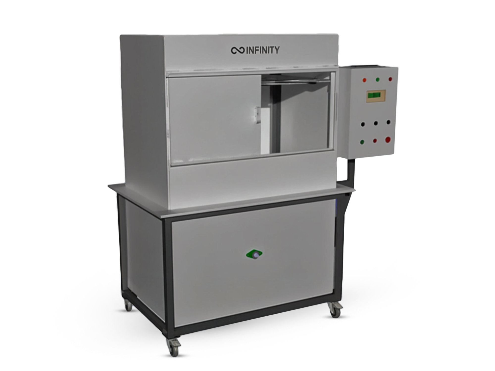 تقوم هذه الماكينة بتنزيل قطع الزجاج المختلفة إلى حوض الحامض لكي يقوم بالحفر على الزجاج عن طريق التفاعل الكيميائي بين الزجاج والحامض كي يعطي حفر لامع بدقة عالية ثم تقوم بغسل القطع بالمياه حتى تتيح للعامل التعامل المباشر بدون أي خطر.