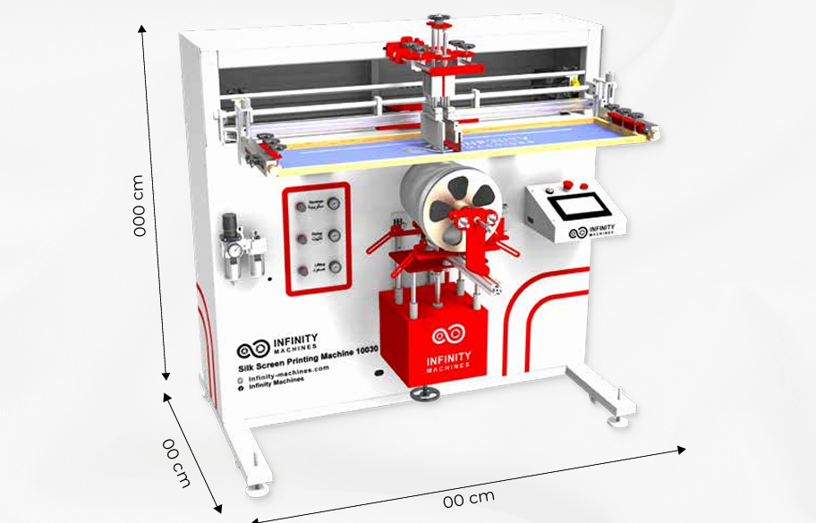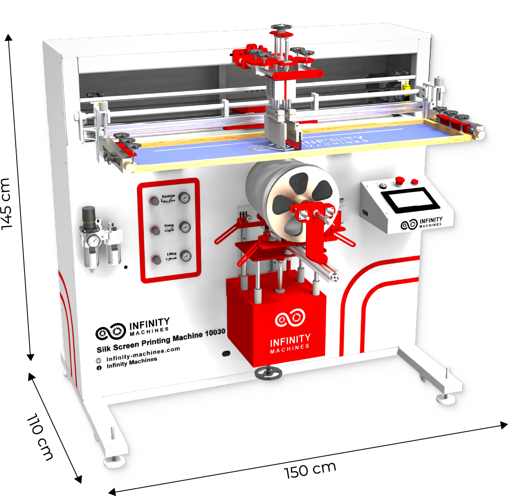تستخدم هذه الماكينة في الطباعة على الأجسام الدائرية الكبيرة عن طريق شبلونة من الحرير ويمكن استخدام أنواع مختلفة من الأحبار فيها.