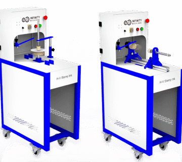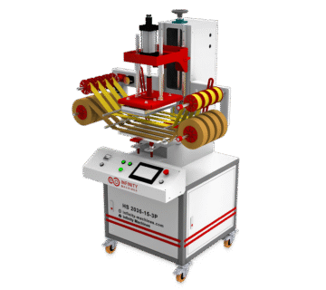 تستخدم هذه الماكينة في نقل الطباعة من الرول إلى القطعة المطلوبة ( زجاج – بلاستيك – جلد – ورق ) عن طريق الحرارة والضغط .