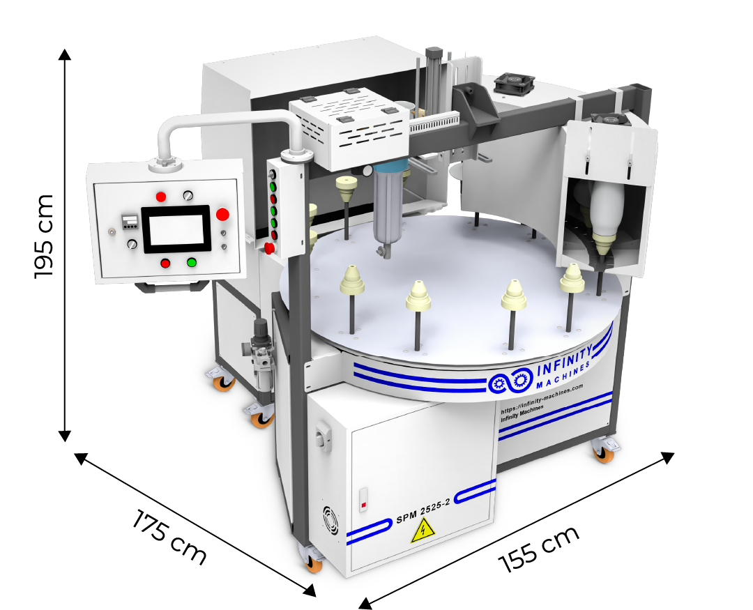 - يمكن إضافة وحدات تسخين قبل أو بعد عملية الرش أو الإثنين معاً بقدرة 2 ك.وات لسهولة مسك القطعة بعد عملية الرش.
